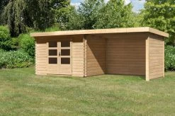 KARIBU Gartenhaus Kandern 6, Terragrau, Fichtenholz 28mm, 612 X 274 X 222 Cm, Pultdach, Anbau 3,2m