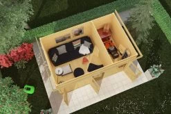 KARIBU Gartenhaus Kerko 6, Terragrau, Fichtenholz 19mm, 334 X 306 X 216 Cm, Flachdach, Anbau 2,8m