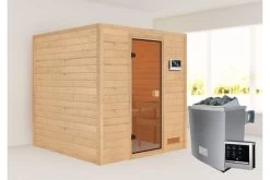 KARIBU Jara Sauna , Naturbelassen, Fichte, 195x195x187 Cm,SETOfen 4,5 KW Ext. Strg. Easy