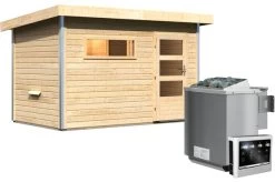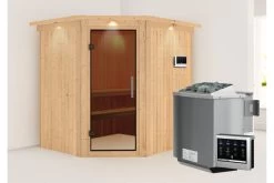 KARIBU Selena Sauna , Naturbelassen, Fichte, 195x145x187 Cm,SETOfen 4,5 KW Integr. Strg.