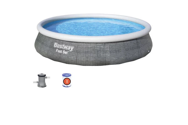 BESTWAY Fast Set Pool mit Rattanoptik, TriTech™, ca. ø 396 x 84 cm, mit Filterpumpe, selbstaufbauend