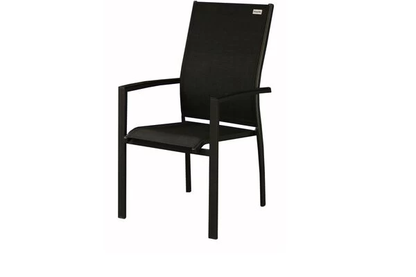 Doppler Stapelsessel Expert aus pulverbeschichtetem Aluminium und Textilene Bezug in schwarz