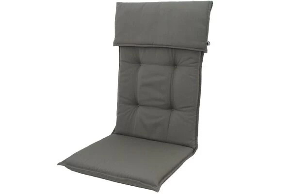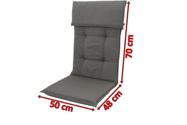 Der Bezug wird aus 100% Acrylfaser (Dralon®) mit Teflonbeschichtung gefertigt, was sie gemütlich und gleichzeitig unglaublich pflegeleicht macht. Das Polster ist abwischbar, aber dennoch luftdurchlässig, damit Sie nicht unnötig schwitzen, wenn Sie auf diesen sitzen oder liegen. Die Auflage bietet dank der Färbung in einem schönen Grauton auch einen tollen Farbtupfer für Ihre Möbel. Durch die verstellbare Halterung mit Klickverbindung an der Rückseite und die Bindekordeln an der Sitzfläche lässt sich die Auflage kinderleicht fixieren und verrutscht nicht so leicht, auch wenn der Stuhl eine glatte Oberfläche besitzt. Dank der Maße von ca. 120 x 50 cm passt sich die Auflage perfekt an die meisten Hochlehner an. Der Komfort kommt selbstverständlich nicht zu kurz – dafür sorgt neben dem weichen, ca. 7 cm starken Kern auch das zusätzliche Kopfpolster. Ob zum Sonnen, beim Grillabend oder bei der Familienfeier – diese Auflage macht stets eine gute Figur.