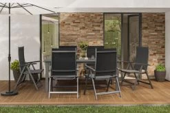 KETTLER Cubic/BasicPlus Esstischgarnitur, Anthrazit, Alu/Kettalit/Textilene, 160×90 Cm, 6 Multipos