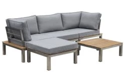 OUTFLEXX Loungeset, Aluminium Mit Sunproof Olefin, FSC Akazie, Gepolstert In Grau, Für 3-4 Personen