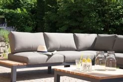VILLANA Eck-Loungegruppe, Anthrazit/grau Meliert, Alu/Holzimitat/Polyester, 5 Personen, Inkl. Kissen