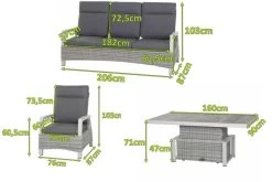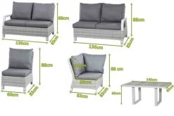 SIENA GARDEN Corido Loungeset, Ice Grey, Alu / Gardino®-Geflecht, 6 Personen, Loungetisch 140x85cm