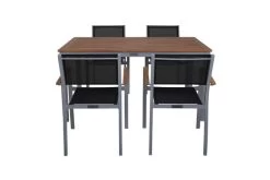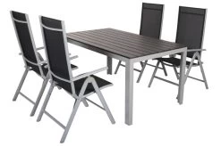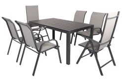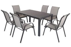 VILLANA Esstischgarnitur, Anthrazit/grau, Alu/Holzimitat/Textil, Tisch 150x90cm, 6 Sessel, Stapelbar
