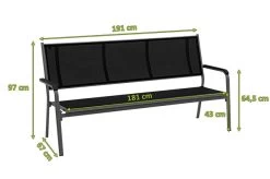 KETTLER BasicPlus 3er Bank, Anthrazit, Alu/Textilene, 67x97x191, 0310612-7000