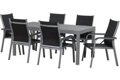 KETTLER Basic Plus Esstischgarnitur, Silber/anthrazit, Alu/Textilene, 180/240x90cm, 6 Stapelsessel