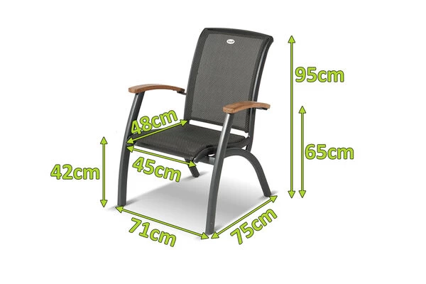 Die verwendeten Materialien sind extrem witterungsbeständig und pflegeleicht, daher können sie auch bei schlechtem Wetter ohne Probleme auf Ihrer Terrasse stehen bleiben. Die Textilenbespannung (70% Polyvinylchlorid, 30% Polyester) ist beständig gegen UV-Strahlung, sodass die Farben lange frisch aussehen. Außerdem trocknet sie nach einem kurzen Schauer sehr schnell. Zum Schutz Ihrer Terrasse ist der Sessel mit Fußkappen ausgestattet, welche vor unschönen Kratzern schützen. Die FSC®-Zertifizierung garantiert Ihnen, dass das Holz aus verantwortungsvollen Quellen stammt, sodass Sie sich entspannt zurücklehnen und Ihren neuen Gartenstuhl so richtig genießen können.