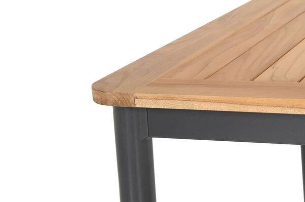 Das Set passt zu jedem Gartenstil und bietet genügend Platz für 6 Personen, damit Sie gemütliche Grillabende mit Ihrer ganzen Familie verbringen können. Die Leichtigkeit des modernen Designs werden Sie in Ihrem Garten nicht mehr missen möchten. Genießen Sie den Komfort, der jeden Aufenthalt im Freien zu etwas Besonderem werden lässt – die hochwertigen und pflegeleichten Materialien bieten Ihnen den nötigen Schutz, wenn das Wetter einmal nicht mitspielen sollte. Das Gestell des Tisches wird aus pulverbeschichtetem und rostfreiem Aluminium gefertigt. Wetterumschwünge und Regen machen diesem Gestell nichts aus. Rost hat keine Chance. Dieses im Trend liegende Material ist leicht, robust und stabil. Es ist pflegeleicht, wetterfest und ganzjährig für den Außeneinsatz geeignet. Kein Wunder also, dass viele der hergestellten Gartenmöbel inzwischen mit Aluminium verarbeitet werden Die Tischleisten aus FSC-zertifiziertem Teakholz verleihen diesem Tisch einen ganz besonderen Charme. Darüber hinaus ist Teakholz besonders witterungsbeständig und hält sowohl Hitze und Frost, als auch Regen und Feuchtigkeit aus. Es hat außerdem aufgrund des hohen Anteils an holzeigenen Ölen einen natürlichen Schutz gegen Pilze und andere Schädlinge. Die Sessel von Hartman wissen durch die qualitativ hochwertige Verarbeitung und Stabilität zu überzeugen. Wegen der Armlehnen aus FSC-zertifiziertem Teakholz entsteht eine unverwechselbare Optik, die die Stühle zu einem echten Hingucker machen. Dank der vorteilhaften Stoffzusammensetzung der schwarzen 4×4 Textilenbespannung aus 70% Polyvinylchlorid und 30% Polyester profitieren Sie von einer langen Haltbarkeit. Sie werden gar nicht mehr aufstehen wollen, denn das witterungsbeständige Material ist durch seine Flexibilität auch ohne Auflagen sehr bequem. Das Gestell aus robustem Aluminium sorgt für ein geringes Eigengewicht von nur ca. 5,3 kg, sodass sich die Stühle kinderleicht verschieben oder an die gewünschte Position tragen lassen. Trotz des leichten Gewichts sind die Sessel äußerst stabil und können mit bis zu 130 kg belastet werden. Um Ihren Terrassenboden beim Verschieben zu schützen, verfügen die Füße über praktische Bodenschoner. Ob Sie beim Essen ganz aufrecht sitzen möchten oder sich in der Sonne zurücklehnen wollen um zu entspannen, Sie finden immer die richtige Sitzposition. Ebenso schnell und unkompliziert können Sie die Stühle zusammenklappen und platzsparend verstauen.