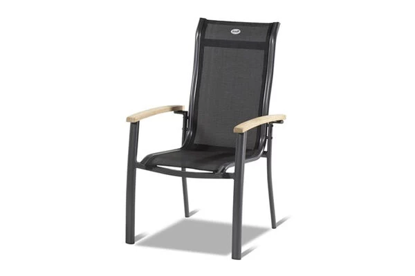 - Stapelbarer Sessel mit xerix-farbenem Aluminium und FSC®-Teakholz Armlehnen