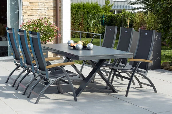 Hartman Esstischgarnitur mit Xanadu Ausziehtisch aus Alu und 6 Multipositionssessel aus der Serie „Primo „