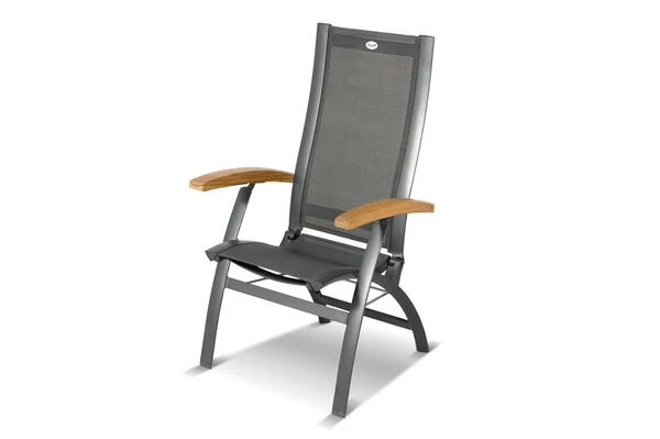 - Sessel mit xerix-farbenem Aluminium-Gestell und FSC-Teakholz Armlehnen