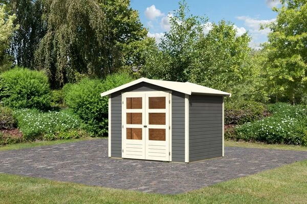 1x KARIBU Gartenhaus Amberg 3 , terragrau , ca. 272 x 186 x 209 cm