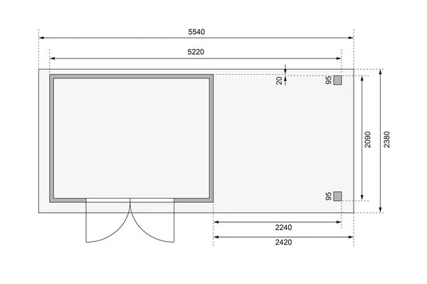 - Artikelbezeichnung: Askola 4 im Set mit Anbaudach 2,40 m Breite und 19 mm Rückwand
