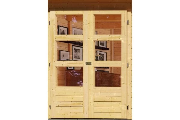 Das Gartenhaus Kerko aus nordischer Fichte von KARIBU wird aus 19 mm Wandbrettern im Steck-/Schraubsystem gefertigt und kann somit rasch und einfach aufgebaut werden. Das praktische Flachdach aus Massivholz sorgt dafür, dass das Gartenhaus schnell und wirkungsvoll gegen Witterungseinflüsse geschützt ist. Dank der Seitenhöhe von ca. 195 cm und einer Firsthöhe von ca. 211 cm sorgt das Haus innen für viel Platz. Kesseldruckimprägnierte Bodenbalken sorgen für optimalen Schutz gegen aufsteigende Feuchtigkeit. Durch die Positionierung unter dem Gartenhaus schützen die Bodenbalken effektiv vor Staunässe und Spritzwasser. Das Gartenhaus wird mit der, praktischerweise schon vormontierten Tür, im stabilen Massivholzrahmen ausgeliefert und bietet dank der großen Öffnung bequemen Zutritt in das Haus. Nebenbei bietet sie effektiven Schutz vor Diebstahl. Gleichzeitig lassen die großzügigen Lichtausschnitte im jeweiligen Türflügel ausreichend Tageslicht in das Gartenhaus einströmen.