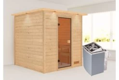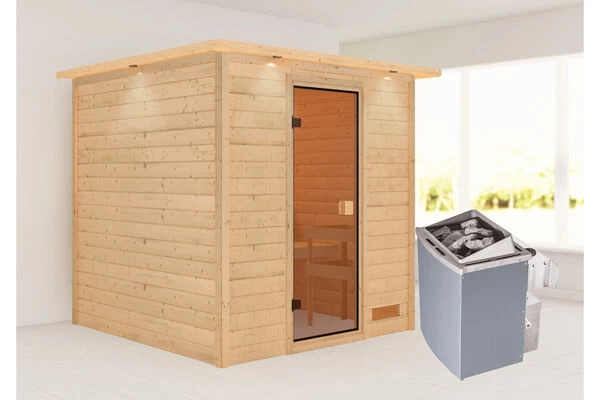 1x KARIBU Jara Sauna inkl. Kranz SET, Ofen 4,5 kW integr. Strg.