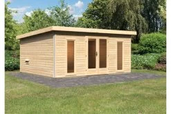 Saunahaus Mainburg 4 SET A aus Fichtenholz mit Doppelflügeltür und Vorraum in verschiedenen Ausführungen von KARIBU