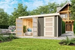 1x KARIBU Mittelwandhaus Mühlentrup 2 , terragrau , ca. 428 x 272 x 212 cm