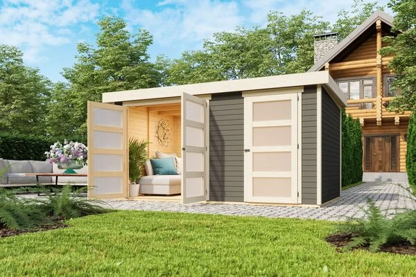 Bitte beachten: das Gartenhaus wird ohne Fußboden und, sofern nicht anders ausgewählt oder angegeben, auch ohne Zubehör angeliefert. Dieses können Sie separat oder schon als Set beim Artikel selber erwerben.