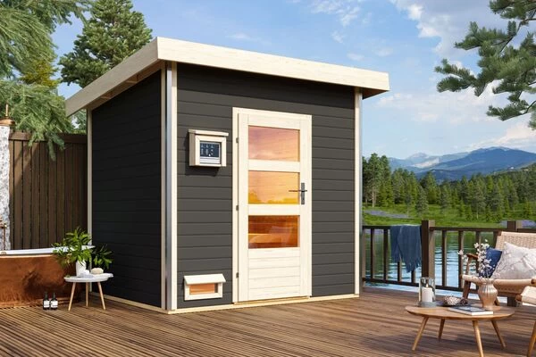 Saunahaus Norge aus Fichtenholz mit Fronteinstieg in verschiedenen Ausführungen von KARIBU