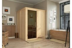 Sauna Norin aus Fichtenholz mit Fronteinstieg inkl. graphitfarbener Tür in verschiedenen Ausführungen von KARIBU