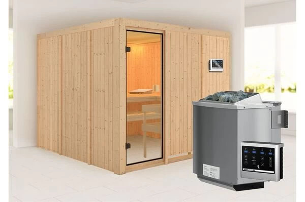 Sauna Arvika von KARIBU mit diversen Ofen- und Steuerungsoptionen