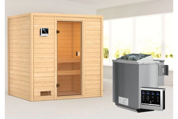 1x KARIBU Selena Sauna inkl. SET Ofen 4,5 KW Bio ext. Strg. Easy