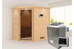 1x KARIBU 38 mm Sauna Svea mit Eckeinstieg, graphitfarbener Tür und Dachkranz in verschiedenen Ausführungen inkl. Montageanleitung und -material