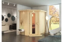 Sauna Taurin aus Fichtenholz mit Eckeinstieg inkl. Energiespartür in verschiedenen Ausführungen von KARIBU