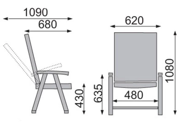 - Rückenlehne verstellbar: 4-fach
