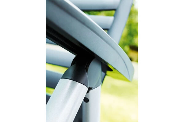 Mit dem Multipositionssessel aus der Serie Wave bequem durch den Sommer. Mittels Rasterschiene lässt sich der Sessel leicht in 4 verschiedene Positionen bringen – so wird der Komfort eines Liegestuhls direkt integriert. Das solide und formschöne Gestell besteht aus edlem, silberfarbenem Aluminium. Die anthrazitfarbene Sitzfläche wird aus hochwertigem KETTALUX gefertigt. KETTALUX ist eine besondere Spezialität der Kunststoffverarbeitung und wurde weitgehend von Kettler zur heutigen Reife gebracht. Das leichte Material ist formstabil und trotzdem sehr bequem und zusätzlich UV- und sonnenölbeständig – insgesamt also der perfekte Begleiter in Ihrem Garten. Dank der leichten Materialien und des Klappmechanismus lässt sich der Stuhl leicht handhaben – wenn er nicht benötigt wird können Sie ihn platzsparend verstauen.