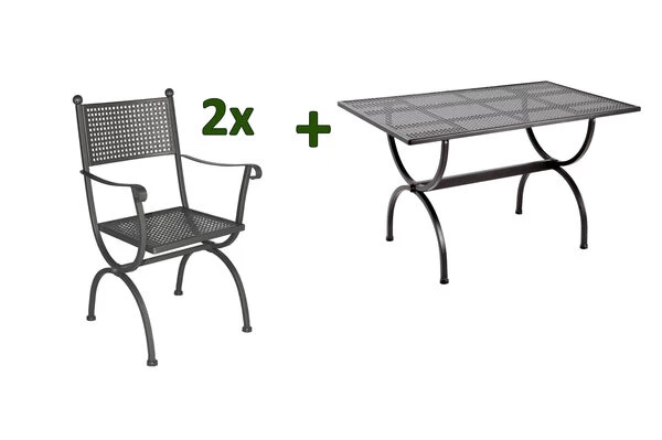 MBM Romeo Esstischgarnitur, marone, Schmiedeeisen, verzinkt, pulverbeschichtet, Tisch 125×75 cm, 2x Sessel