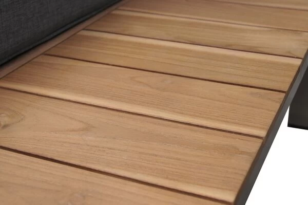Das Gestell des eindrucksvollen 2-Sitzers wurde aus gebürstetem Edelstahl in Kombination mit FSC-zertifiziertem Teakholz angefertigt. Edelstahl eignet sich dank zahlreicher Vorteile ideal für die Herstellung von Gartenmöbeln. Das Material ist besonders stabil, witterungsbeständig, pflegeleicht und rostfrei. Das silberfarbene Gestell wird mit einer Sitzfläche aus FSC-zertifiziertem Teakholz kombiniert. Teakholz ist eine der beliebtesten Holzarten und überzeugt mit einer hohen Witterungsbeständigkeit und Haltbarkeit. Zusätzlich ist es extrem wasserabweisend. Die FSC-Zertifizierung garantiert Ihnen, dass dieses Möbelstück aus verantwortungsvollen Quellen stammt, sodass Sie sich guten Gewissens zurücklehnen und Ihre neuen Gartenmöbel so richtig genießen können. Die Sitz- und Rückenpolster wurden aus Olefin in der Farbe grau angefertigt und bieten Ihnen den perfekten Sitzkomfort. Olefin besteht aus starken, strapazierfähigen Fasern. Die Fasern weisen eine geringe Feuchtigkeitsaufnahme auf, sodass Sie sich auch nach einem kleinen Regenschauer schnell wieder hinsetzen können. Zusätzlich ist das Material widerstandsfähig gegen Schmutz, Abnutzung, Flecken und Chemikalien.