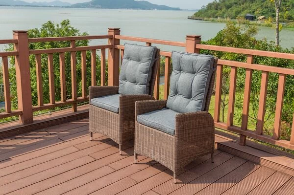 Dieser gemütliche Diningsessel ist wahrlich ein Verwandlungskünstler. Hier können Sie gemütlich mit einem guten Buch in der Sonne liegen oder aber auch ganz bequem Ihr Mittag- oder Abendessen zu sich nehmen. Hierzu brauchen Sie einfach nur Platz zu nehmen und sich Ihren Lieblingssessel problemlos in eine bequeme Liege- oder Sitzposition einstellen. Dies gelingt kinderleicht dank der integrierten Gasdruckfeder – die Rückenlehne kann mit einem kleinen Hebel an der Seite stufenlos verstellt werden. Der Sessel hat ein Gesamtmaß von ca. 65 x 55 x 112 cm. Die Sitzfläche ist ca. 50 cm tief, die Sitzhöhe mit Kissen liegt bei ca. 46 cm. Die Armlehnen mit einer Höhe von ca. 66 cm sorgen bei diesem Sessel für besonderen Komfort. Der Sessel wird im praktischen 2er Set angeliefert. Die maximale Belastbarkeit liegt bei ca. 135 kg.
