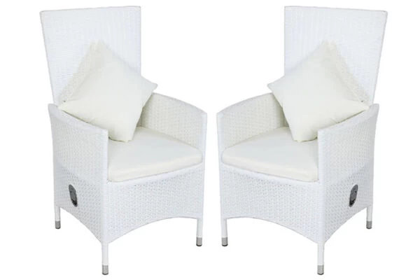 Weißer Polyrattan-Gartenstuhl mit verstellbarer Lehne im Doppelpack