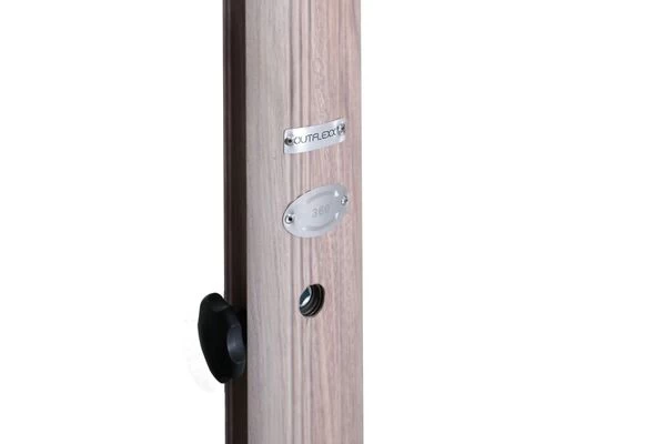 Wichtige Information: Dieser Schirm kann ohne Adapterplatte mit unseren OUTFLEXX® Schirmständern oder dem OUTFLEXX® Bodenanker kombiniert werden.