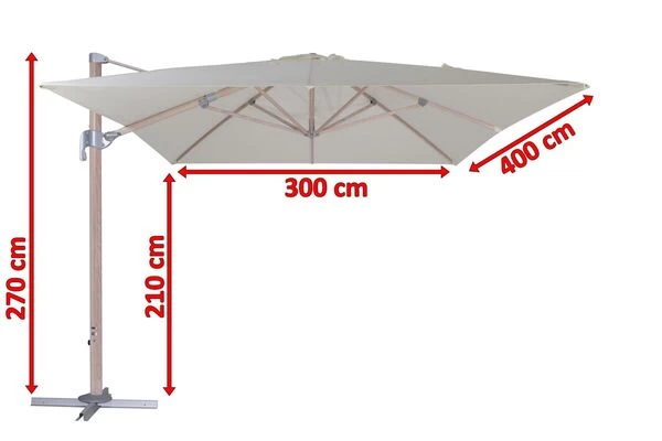 1x Ampelschirm von OUTFLEXX® in Holzoptik, creme, ca. 400 x 300 x 270 cm