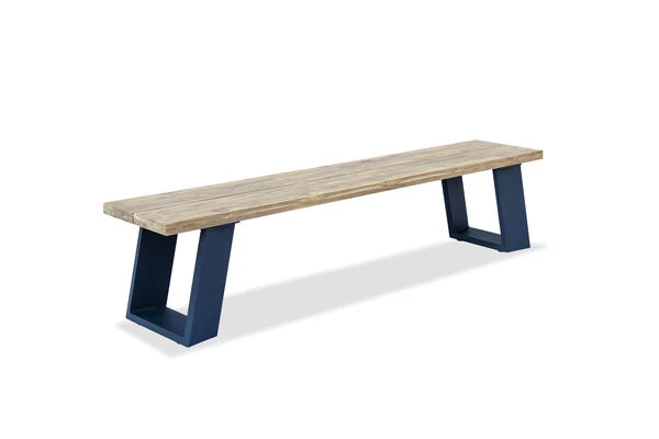 OUTFLEXX® Gartenbank „Zero“, aus recyceltem FSC®-Teakholz und Aluminium, ca. 240 x 40 x 46 cm