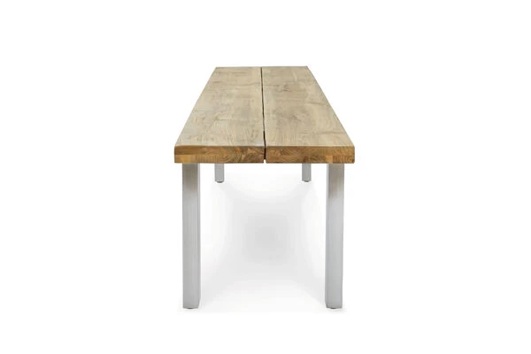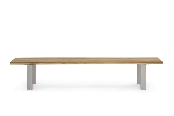 OUTFLEXX® Gartenbank aus recyceltem FSC®-Teakholz und Edelstahl, ca. 240 x 40 x 45 cm