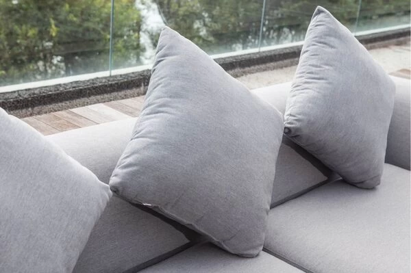 | Zahlreiche Stellmöglichkeiten & höchster Komfort Die Möbel lassen sich auf verschiedene Arten zusammenstellen, so können Sie die Lounge ganz auf Ihre Bedürfnisse abstimmen. Die im Lieferumfang enthaltenen und ebenfalls aus Sunbrella gefertigten Dekokissen maximieren den Sitz- und Liegekomfort. |
