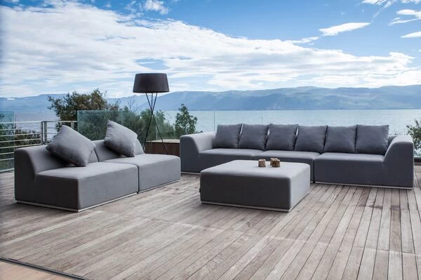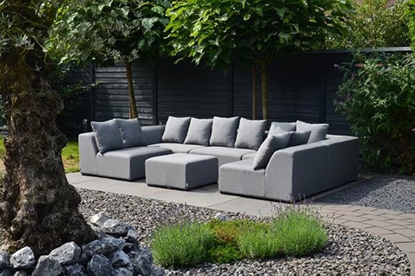 Loungegarnitur Buddha von OUTFLEXX® aus Alu/Sunbrella, in der Farbe flanelle, für 7 – 8 Personen