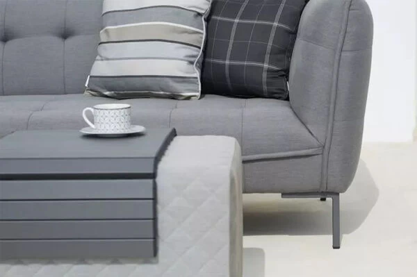 Diese Loungebank von OUTFLEXX® ist ein wahres Multitalent, ob sie ihn nun als zusätzliche Sitzmöglichkeit für 2 Personen oder als praktischen Loungetisch nutzen. Mehrere Elemente der Cozy Serie zusammengesetzt liefern ein gemütliches Loungeset – hier sind Sie ganz frei in Ihren Möglichkeiten. Die Bank hat ein Gesamtmaß von ca. 148 x 50 x 42 cm. Der Oberstoff in der Sunbrellafarbe flanelle unterstreicht den einzigartigen Charakter der Möbel der Cozy Serie. Ein besonderes Highlight ist die dekorative Steppung des Stoffes. Für das Gestell wird robustes, pulverbeschichtetes Aluminium verwendet, welches mit der Schaumstoff-Sunbrella Kombination eine solide Sitz- und Liegemöglichkeit bietet. Bitte beachten Sie, dass das abgebildete Tablett nicht im Lieferumfang enthalten ist, dieses können Sie separat als Zubehör erwerben.