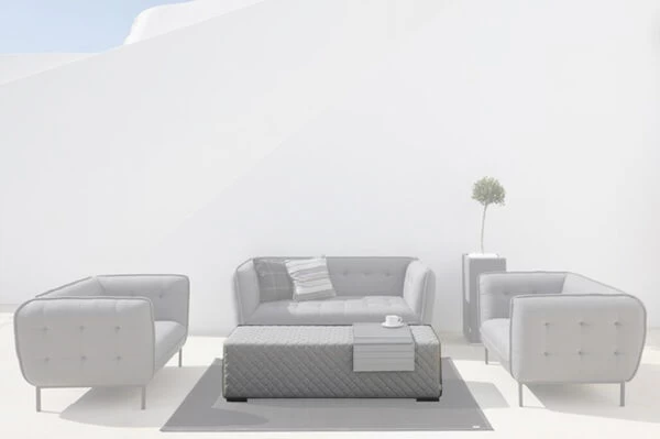 Das Obermaterial dieses Loungeelements besteht aus hochwertigem Sunbrella Textilen (260g/m²). Das Basismaterial von Sunbrella ist spinndüsengefärbtes Acryl, bei dem bereits bei der Herstellung Farbpigmente in die Faser eingebettet werden. Dadurch ist das Gewebe UV-beständig und trotzt Wind- und Wettereinflüssen. Durch ihre absolute Wetterfestigkeit können Sie die Loungemöbel ganzjährig ohne Schutz auf Ihrer Terrasse stehen lassen – und auch verschüttete Getränke oder dreckige Schuhe machen dem Stoff nichts aus. Auch in puncto Farbechtheit unterscheidet sich Sunbrella vom klassischen Textilgewebe, die Farbe sieht auch nach Jahren in Gebrauch noch aus wie neu. Außerdem weist der Stoff atmungsaktive, schmutzabweisende und schimmelbeständige Eigenschaften auf, weshalb er sich hervorragend für den Innen- und Außenbereich eignet. Das Innere des Polsters besteht aus besonderem Schaumstoff – dem „Quick Dry Foam“. Dieses Material verfügt über eine offenporige Zellstruktur, welche mit der Funktion einer Drainage vergleichbar ist. Eingedrungenes Wasser kann ungehindert austreten und unangenehme Gerüche sowie Schimmelbildung werden vermieden. Je nach Beanspruchung und Umwelteinflüssen empfehlen wir, die Sunbrella Möbel einmal im Monat mit einem Wasserschlauch oder einer sanften Bürste von oberflächlichen Verschmutzungen zu befreien. Pflege- und Reinigungsmittel sowie die passende Schutzhülle, mit der Sie Ihre kostbaren Möbel vor herumfliegendem Laub und Dreck schützen können finden Sie im Zubehör.