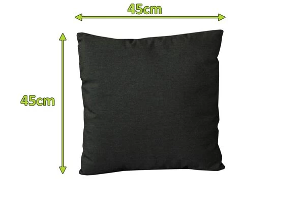 Es kann mit seinen Maßen von ca. 45 x 45 cm entweder nur zu Dekozwecken genutzt werden oder aber um den Sitzkomfort Ihrer Sunbrella Möbel noch mehr zu steigern. Das Obermaterial des Kissens besteht aus hochwertigem Sunbrella Textilen (260g/m²) in der Sunbrellafarbe sooty. Das Basismaterial von Sunbrella ist spinndüsengefärbtes Acryl, bei dem bereits bei der Herstellung Farbpigmente in die Faser eingebettet werden. Dadurch ist das Gewebe UV-beständig und trotzt Wind- und Wettereinflüssen. Durch ihre absolute Wetterfestigkeit können Sie die Loungemöbel ganzjährig ohne Schutz auf Ihrer Terrasse stehen lassen – und auch verschüttete Getränke oder dreckige Schuhe machen dem Stoff nichts aus. Auch in puncto Farbechtheit unterscheidet sich Sunbrella vom klassischen Textilgewebe, die Farbe sieht auch nach Jahren in Gebrauch noch aus wie neu. Außerdem weist der Stoff atmungsaktive, schmutzabweisende und schimmelbeständige Eigenschaften auf, weshalb er sich hervorragend für den Innen- und Außenbereich eignet. Das Innere der Kissen besteht aus 100 % Polyester und hat ebenfalls schnelltrocknende Eigenschaften. Das Kissen besitzt einen Reißverschluss, so kann der Bezug ganz leicht abgenommen werden. Je nach Beanspruchung und Umwelteinflüssen empfehlen wir, Sunbrella Möbel einmal im Monat mit einem Wasserschlauch oder einer sanften Bürste von oberflächlichen Verschmutzungen zu befreien. Pflege- und Reinigungsmittel finden Sie im Zubehör.