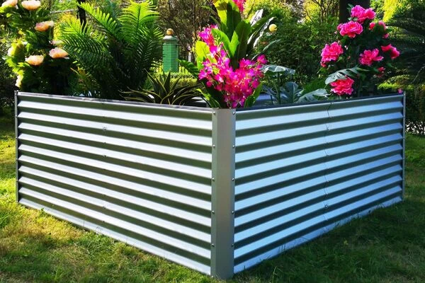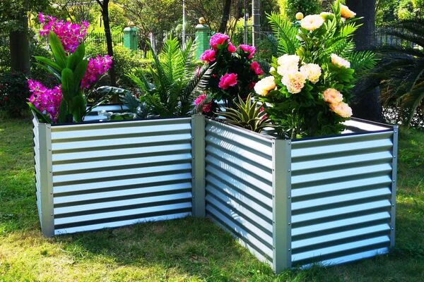 Eck-Hochbeet von OUTFLEXX® in silber, ca. 210 x 210 x 90 x 84 cm