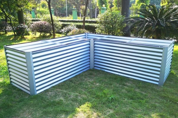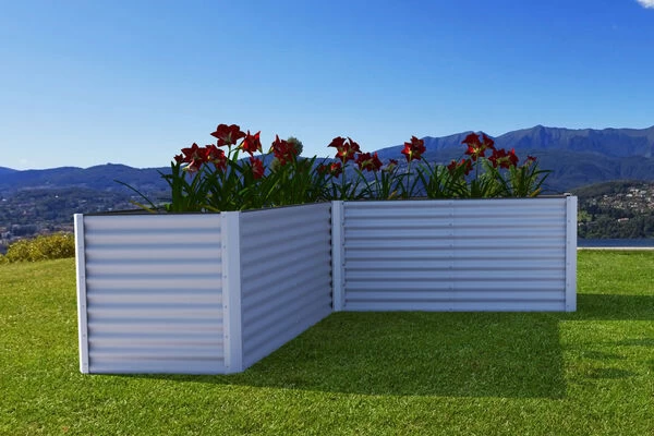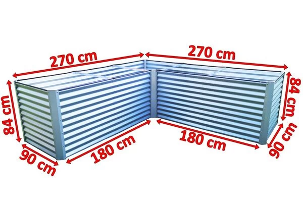 Eck-Hochbeet von OUTFLEXX® in silber, ca. 270 x 270 x 90 x 84 cm