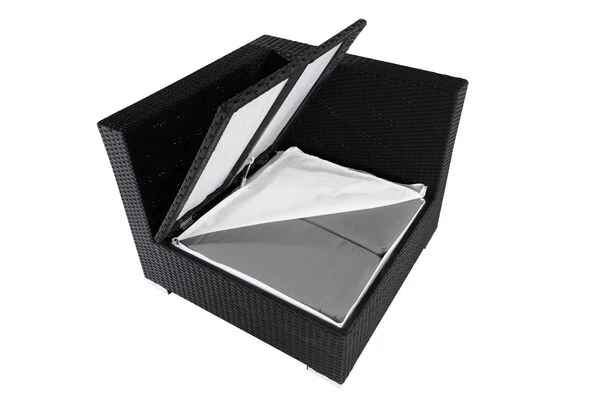 OUTFLEXX® ModulelementeLine: Polyrattan Eckelement mit Kissenboxfunktion in schwarz